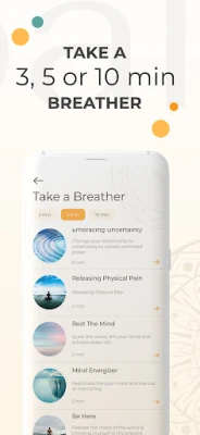 Pause Breathwork naudoja tikslingą stimuliaciją – kvėpavimą, muziką ir judesį – kad subalansuotų nervų sistemą ir sugrąžintų jūsų kūną į pusiausvyrą. Mūsų kvėpavimo seansai svyruoja nuo 5 iki 40 minučių, todėl lengvai rasite tinkamą sesiją savo dienotvarkei. Galite rinktis trumpesnius, 3, 5 ar 10 minučių trukmės „Take A Breather" garso įrašus, skirtus greitam atsipalaidavimui, energijos antplūdžiui ir gijimui, arba pasinerti į ilgesnes, 25 ar 45 minučių trukmės „Go On A Journey" sesijas. Šios gilesnės praktikos, atliekamos gulint, skirtos išvalyti įstrigusį sunkumą, emocijas ir mentalinius blokus. Nepriklausomai nuo paros meto, rasite garso takelių, kurie padės optimizuoti emocinę būseną, suteikti energijos ryte ar nuraminti protą ramiam miegui. Leiskite Pause Breathwork sugrąžinti pusiausvyrą ir išsklaidyti stresą, jausdami aiškumą, stiprybę ir lengvumą savo kūne.