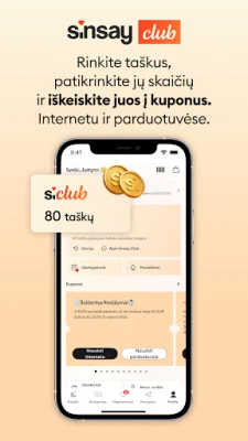 Sinsay rūpinasi, kad apsipirkimas būtų ne tik malonus, bet ir finansiškai naudingas. Kasdien mėgaukitės patraukliomis akcijomis, iššūkiais ir specialiais pasiūlymais, kurie leis sutaupyti perkant mėgstamas prekes – nuo „Dienos prekės" iki unikalių nutrinamų kortelių nuolaidų. Negana to, prisijungę prie Sinsay Klubo, atversite duris į išskirtinių privilegijų pasaulį. Rinkite taškus su kiekvienu pirkiniu ir mainykite juos į vertingus kuponus, kurių vertė gali siekti iki -16 EUR. Klubo nariai taip pat gauna išskirtinius pasiūlymus ir pirmieji sužino apie naujienas, tapdami dalimi bendruomenės, kuri vertina stilių ir protingą apsipirkimą.