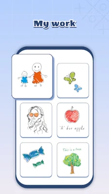 Baigę savo kūrinį, lengvai jį išsaugokite ir pasidalinkite su pasauliu įvairiose platformose, leidžiančiose parodyti savo talentą ir įkvėpti kitus. Nereikia jaudintis dėl pamestų eskizų – „White Sketch Board" tvarkingai saugo visus jūsų sukurtus darbus „Mano darbai" skiltyje, užtikrindama patogų priėjimą ir galimybę bet kada grįžti prie jau sukurtų idėjų ar semtis įkvėpimo. Tegul „White Sketch Board" tampa jūsų asmeniniu kūrybinių atradimų centru.