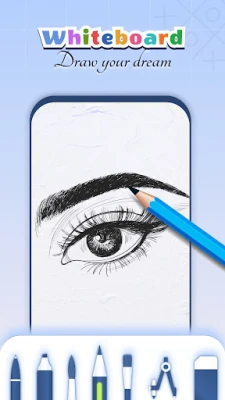 Pasinerkite į įrankių gausą, kuri pavers jūsų vizijas tikrove. „White Sketch Board" siūlo platų piešimo priemonių pasirinkimą – nuo įvairių teptukų ir pieštukų iki geometrinių formų, leidžiančių kurti preciziškus eskizus ar spontaniškus šedevrus. Atraskite turtingą spalvų paletę, kuri suteiks jūsų darbams gyvybės ir išraiškingumo. Lengvai redaguokite savo kūrinius, pritaikydami juos iki smulkiausių detalių. Papildykite juos asmeninėmis nuotraukomis, išraiškingais lipdukais ar individualizuotu tekstu, pasirinkdami iš daugybės šriftų ir spalvų, kad kiekvienas darbas atspindėtų jūsų unikalų stilių.